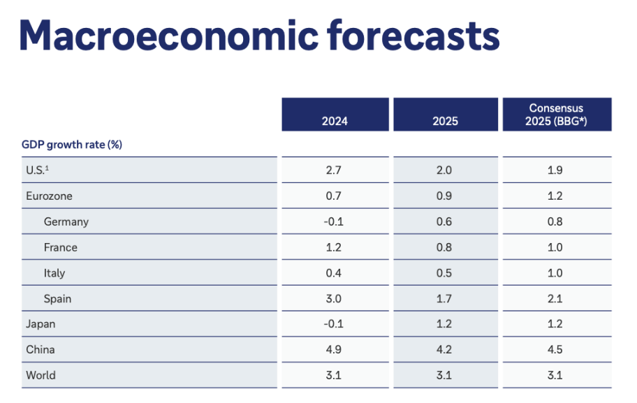 Pertumbuhan ekonomi China di proyeksi tumbuh 4,2% di tahun 2025 oleh Vanguard, ini lebih rendah dibandingkan proyeksi tahun 2024 yang mencapai 4,9%. Sedangkan dari Bloomberg proyeksi untuk tahun 2025 mencapai 4,5%. Dari tradingeconomics, GDP China diproyeksi terus melambat, dimana tahun 2023 kemarin mencapai 5,2%, namun tahun 2024 diproyeksi menjadi 4,8%, tahun 2025 menjadi 4,5%, dan 2026 hanya 4,2%.