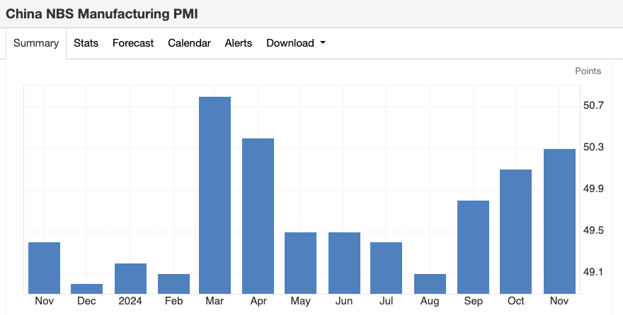 Dimana saat ini sektor manufaktur China sudah mulai membaik yang tercatat di level 50,3 poin di bulan November 2024, sedangkan di bulan Oktober sebesar 50,1 poin, dengan bulan Mei – September 2024 sektor manufaktur mengalami kontraksi.