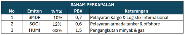 Beberapa saham emiten perkapalan yang berpotensi diuntungkan seperti: