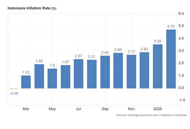 Dalam situasi harga minyak naik, tekanan terhadap harga BBM domestik berimbas bisa meningkat. Jika pemerintah menahan kenaikan melalui subsidi, maka konsekuensinya yaitu peningkatan beban fiskal. Namun jika tidak di cover maka tekanan terhadap inflasi bisa menjadi lebih kuat. Apalagi inflasi tahunan Indonesia Februari 2026 meningkat menjadi 4,76%, mencapai level tertinggi sejak Maret 2023.