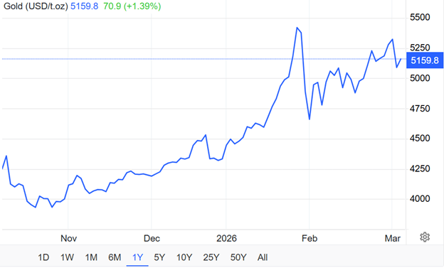 Emas kembali naik di tengah konflik Iran dengan AS-Israel yang sempat menyentuh di level $5.300an per troy ons. Namun pada selasa (3/3/2026) emas sempat koreksi dalam sekitar 4% karena dolar menguat akibat kekhawatiran kenaikan biaya energi yang dapat mendorong inflasi dan aksi taking profit. Tapi setelah itu emas kembali naik melihat masih memanasnya konflik Timur Tengah dimana emas di nilai sebagai hedging aset safe haven.